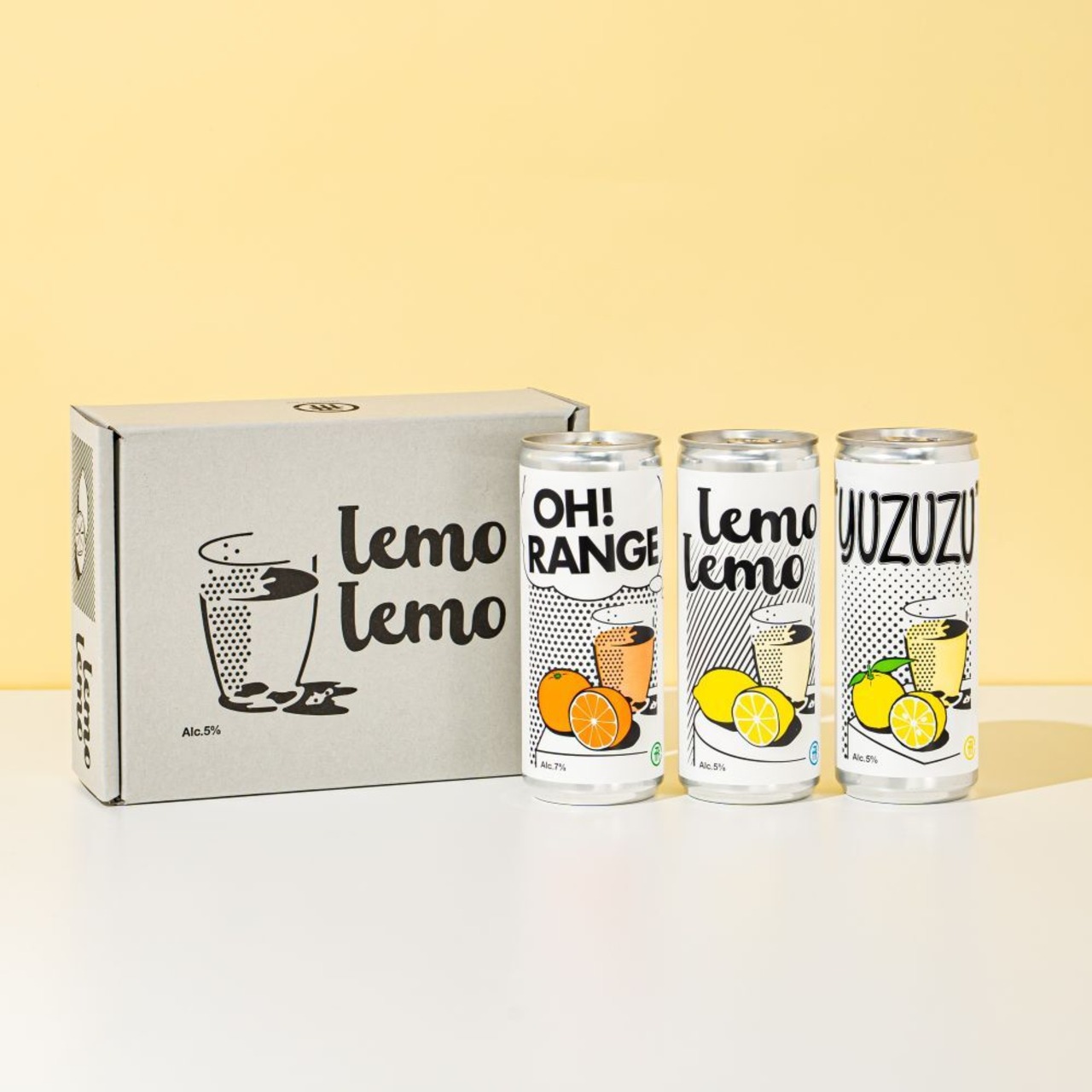 柚子のスパークリングリキュール「YUZUZU」、飛騨クラフトのレモンリキュール「リモンチェッロ」の味わいを、そのまま缶に閉じ込めたリモンチェッロサワー「lemolemo」、大人の味わいを楽しめる炭酸オレンジのお酒「OH!RANGE」の3種類の炭酸リキュールが楽しめるセットです。